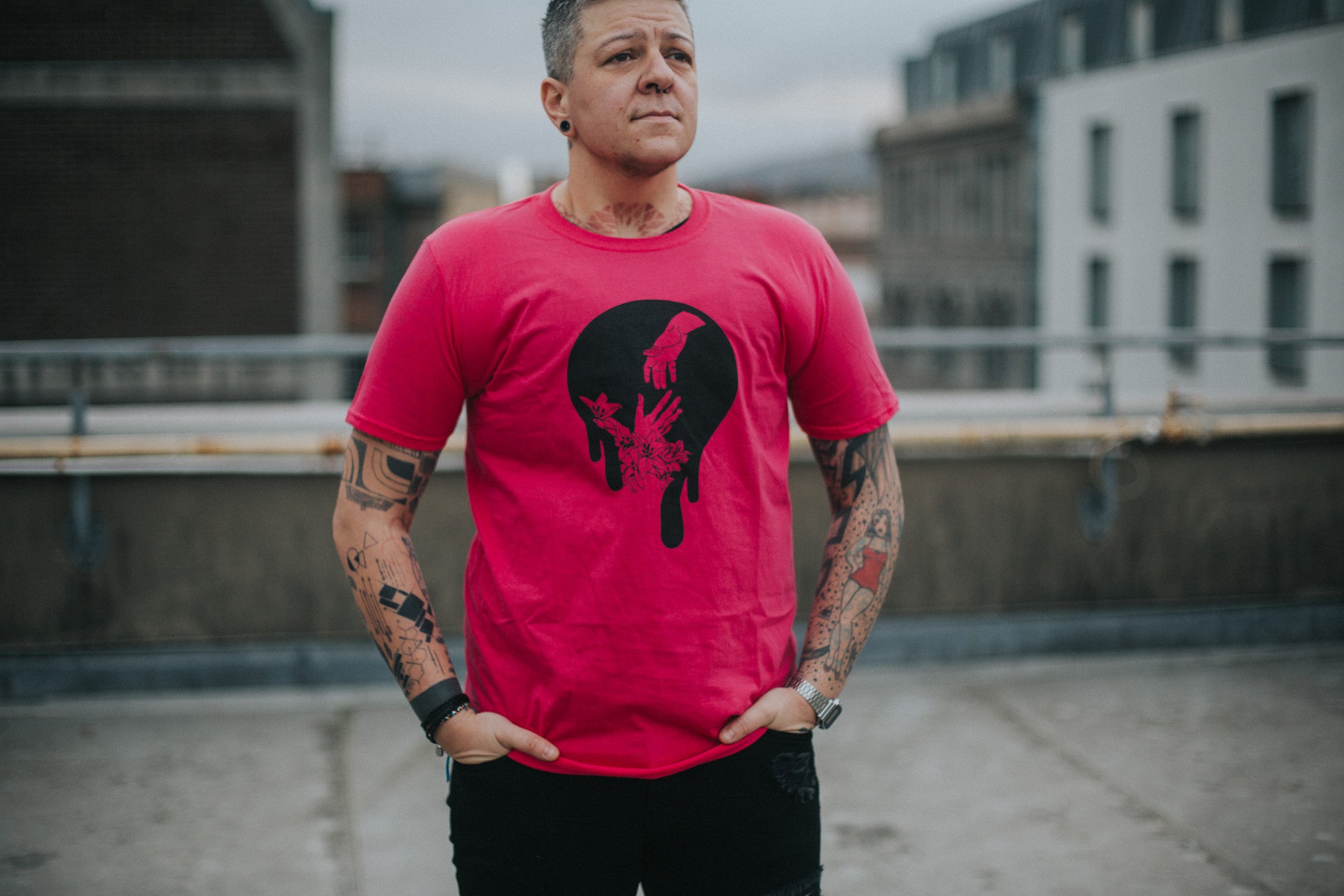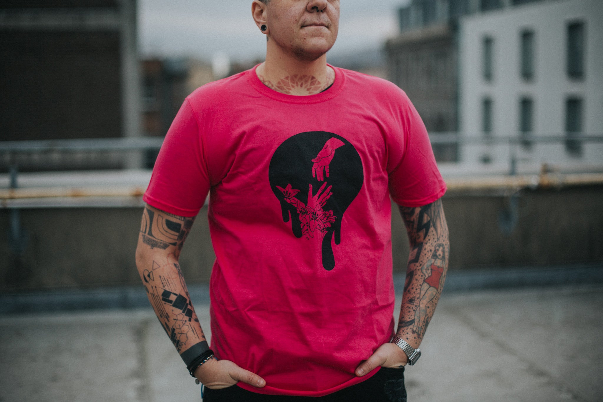 Helping hands short sleeved tee designed by Akunya Fomin.